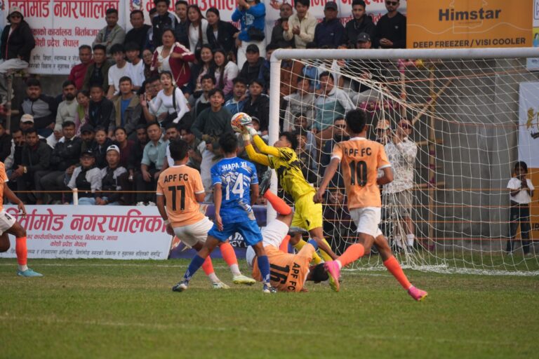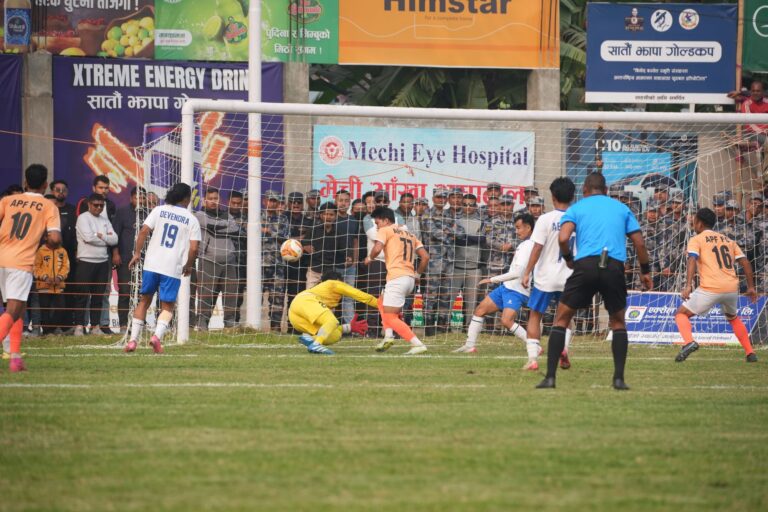 बिर्तामोड, फागुन १ । टाइब्रेकरमा भाग्यमानी सावित हुँदै सशस्त्र प्रहरी बलको एपिएफ फुटबल क्लब झापाको डोमालाल राजवंशी रंगशालामा...